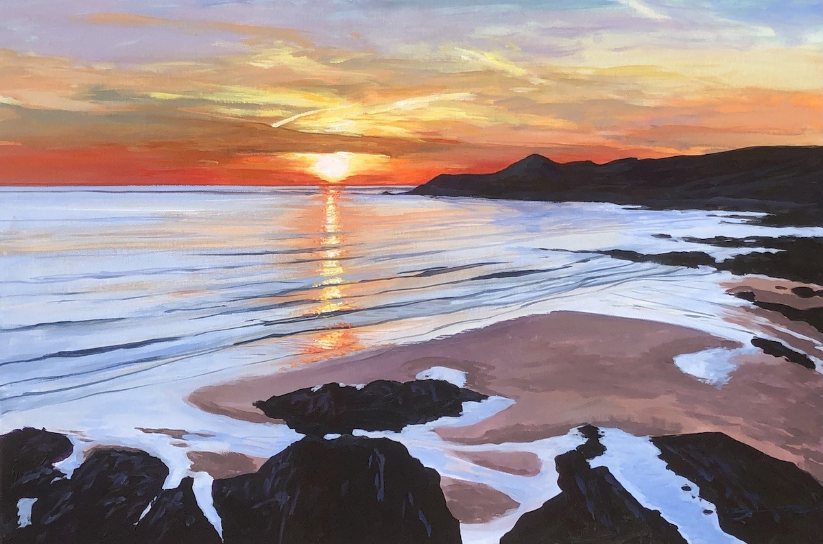“Summer Calm” a warm July evening bathing in the rays of a setting sun on Combesgate beach, Woolacombe.