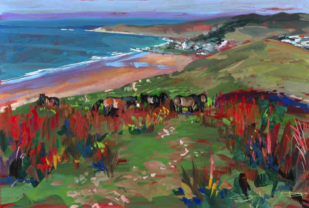 “Sunday morning” on top of the down. Summer warmth returning. Wild ponies in the ferns and stillness all around.